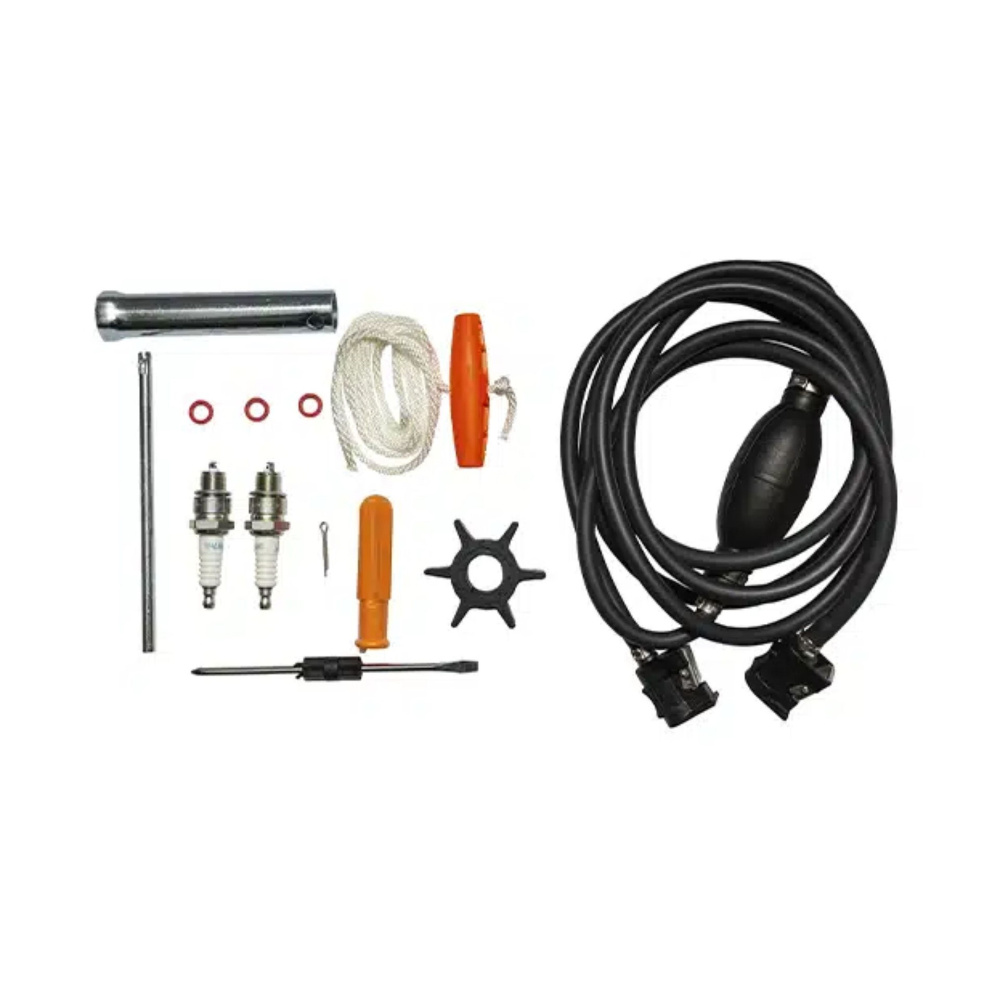 мотор, переносной бак 24л, шланг, груша, паспорт двигателя, руков-во по эксплуатации, ЗИП |